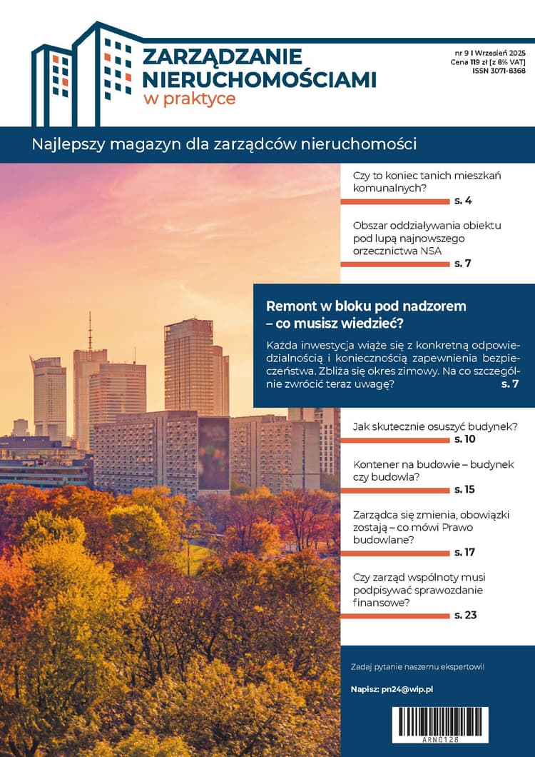 Prace remontowe i modernizacyjne w budynku wielorodzinnym to nie tylko kwestia estetyki i komfortu mieszkańców, ale też obowiązek prawny. Co więcej – każda inwestycja wiąże się z konkretną odpowiedzialnością i koniecznością zapewnienia bezpieczeństwa. Zbliża się okres zimowy. Na co szczególnie zwrócić teraz uwagę?